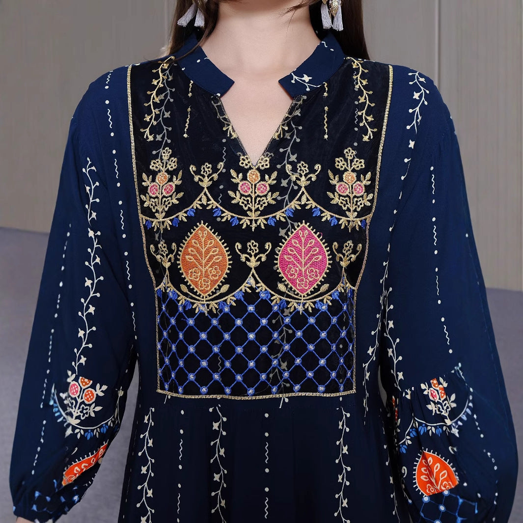 Bohemian Ethnic Style Embroidered Large Swing Skirt