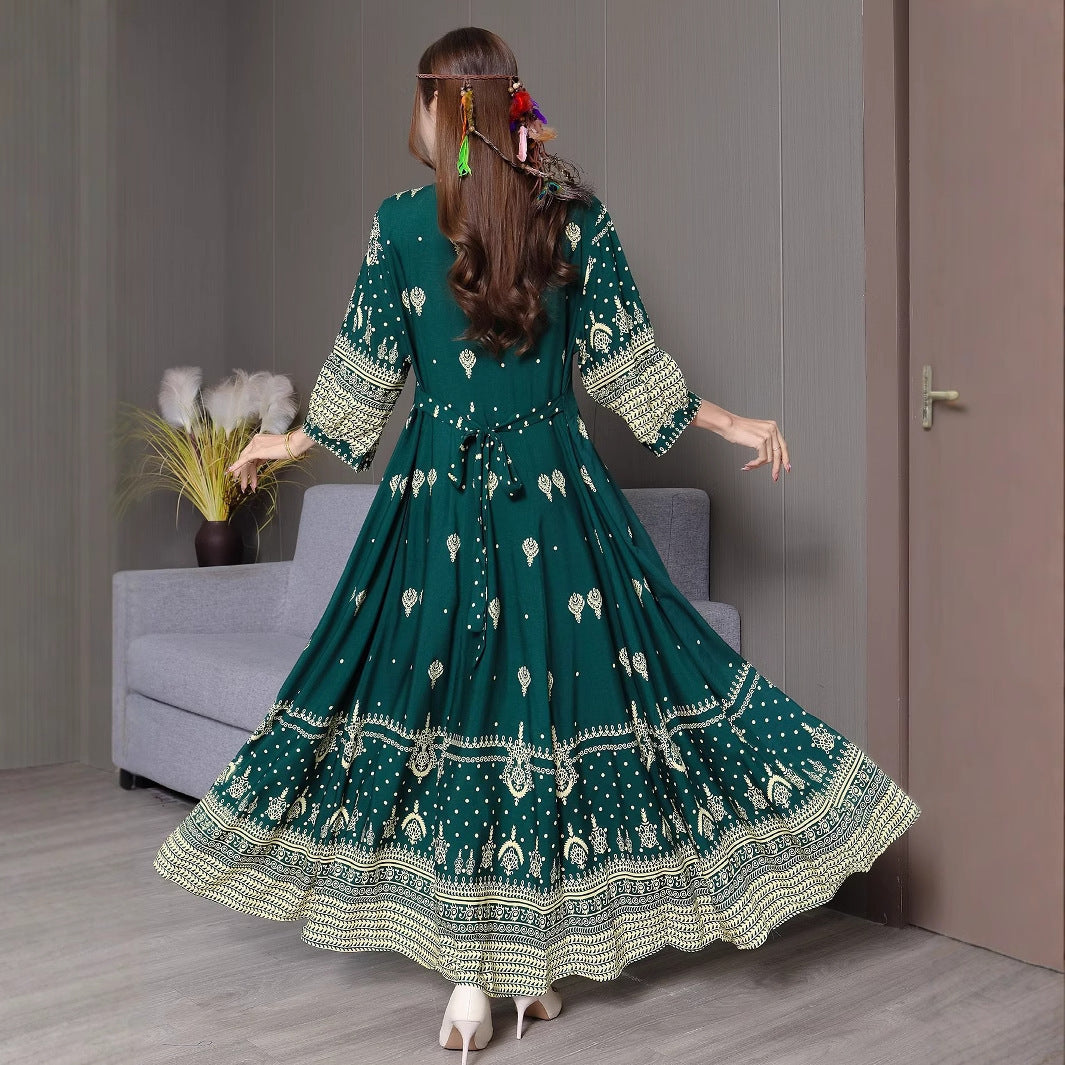 Bohemian Style Dress Ethnic Style Embroidered Large Swing Skirt
