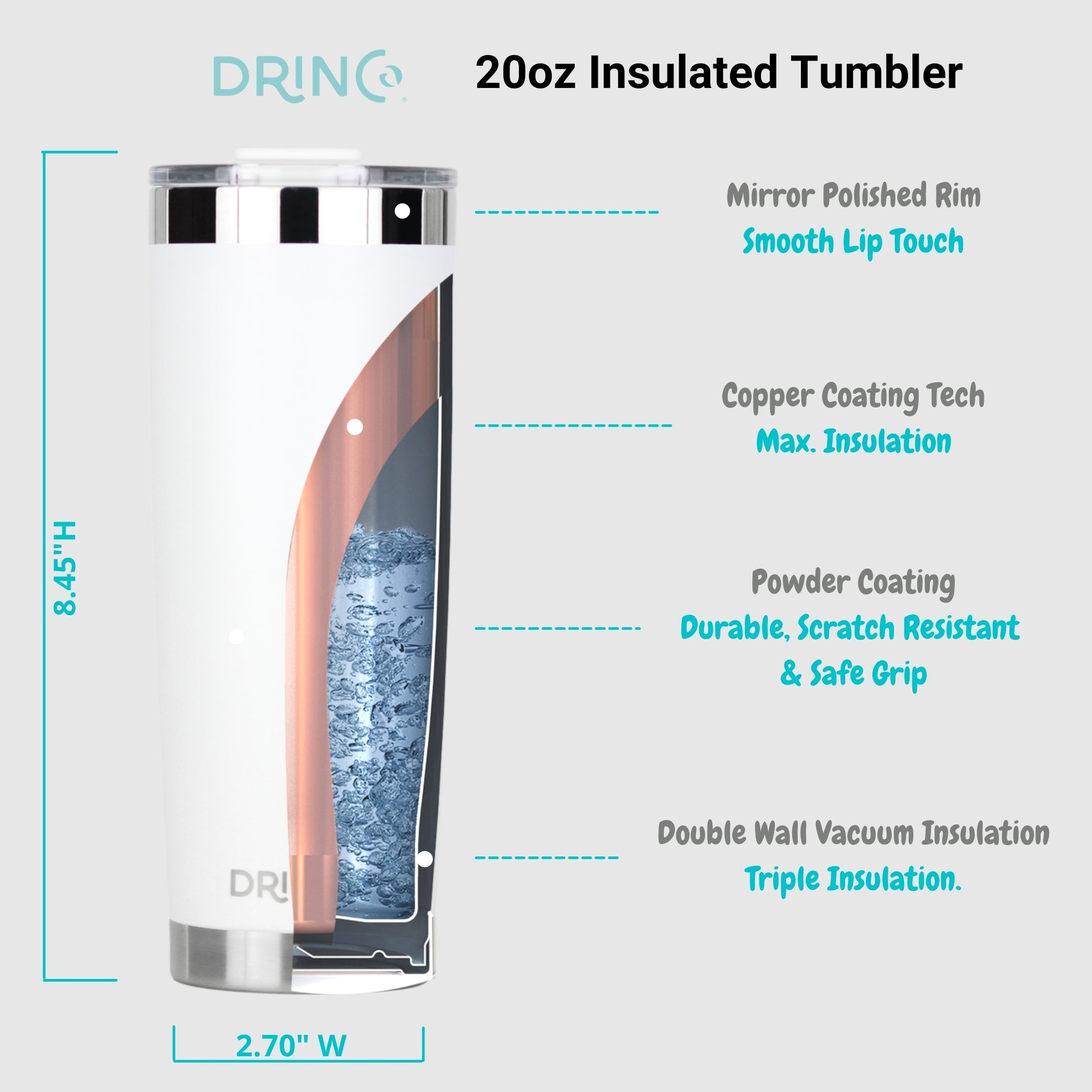 • PREMIUM QUALITY STAINLESS STEEL: The Drinco travel tumbler with straw has been constructed with a sturdy stainless steel (18/8) body a material lauded for its durability. Effective insulation with a see-through removable cap to keep your drinks hot and cold for hours.