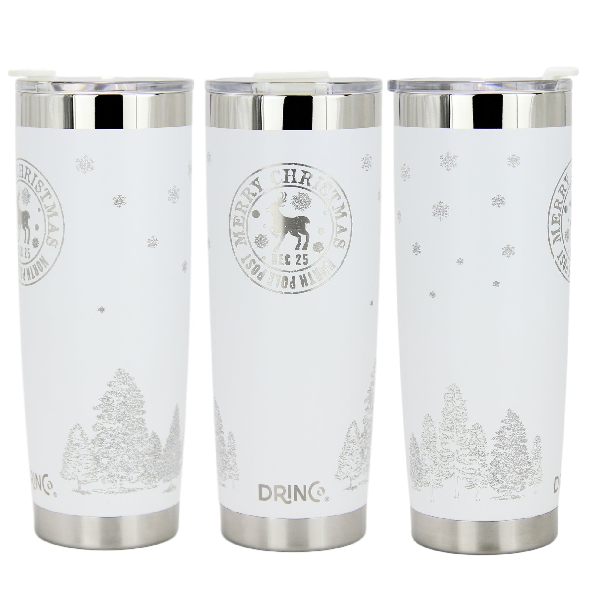 DRINCO® 20oz Insulated Tumbler Spill Proof Lid 2 Straws-White-Xmas