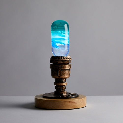 — Includes LED Bulb + Cube Wooden Base