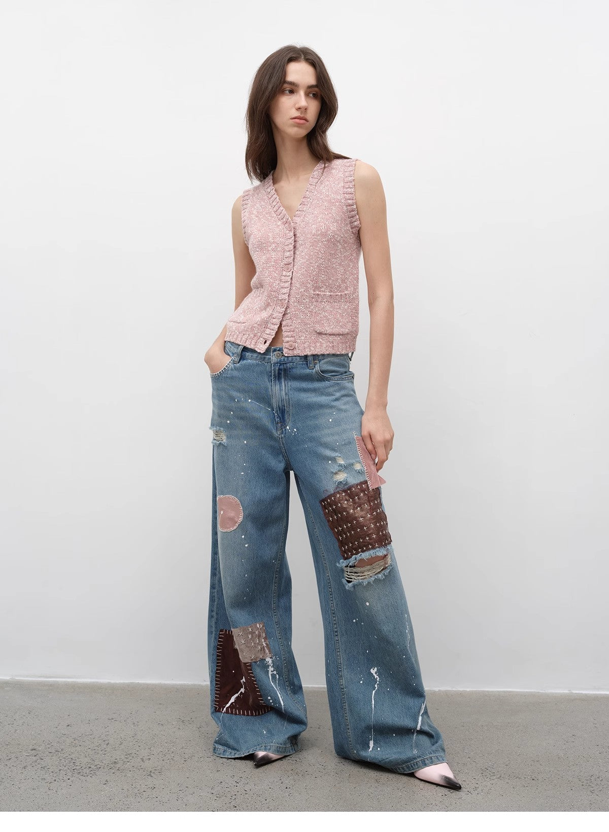 Ferwynn recalls retro elegance with a fresh urban spirit — a V-neck cardigan vest woven in textured color-blocked yarn. Its fitted cut hugs the form with soft resilience, balancing structure and warmth. Made for effortless layering, it shapes the silhouette while embracing comfort, becoming a quiet essential from autumn through spring.