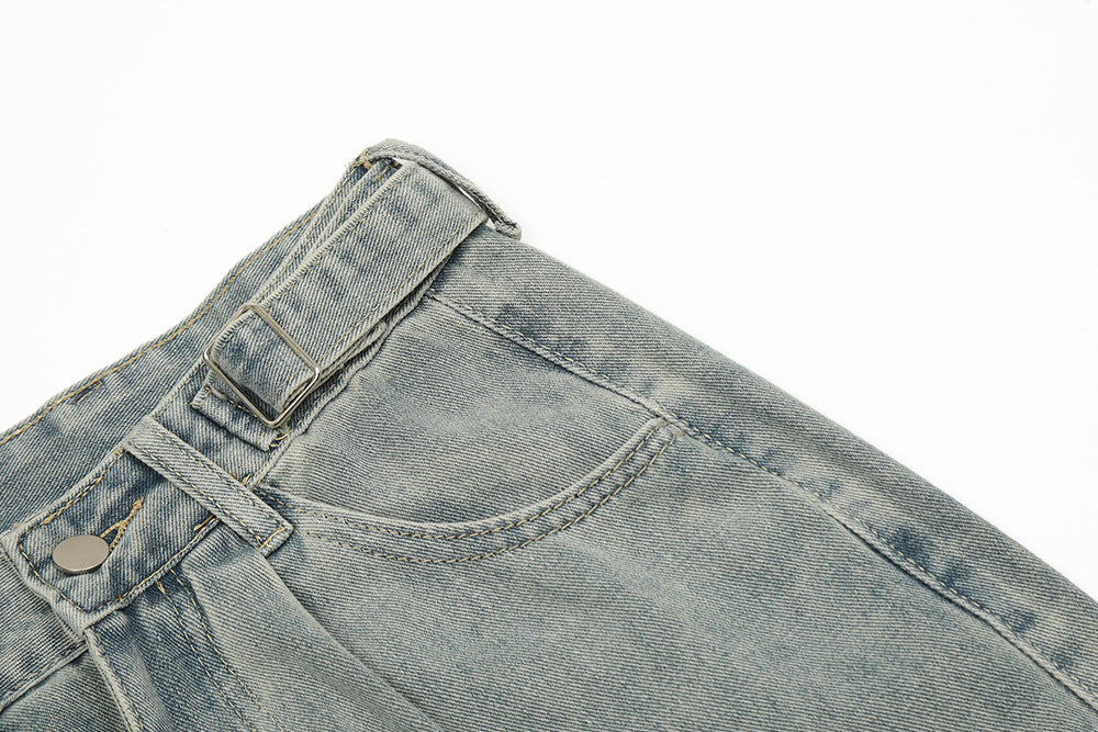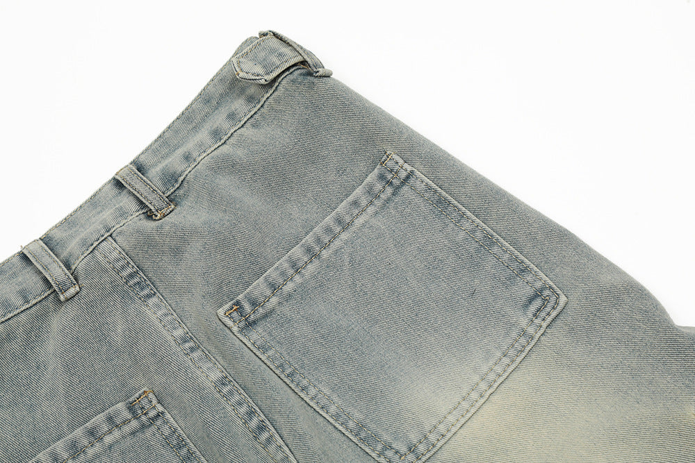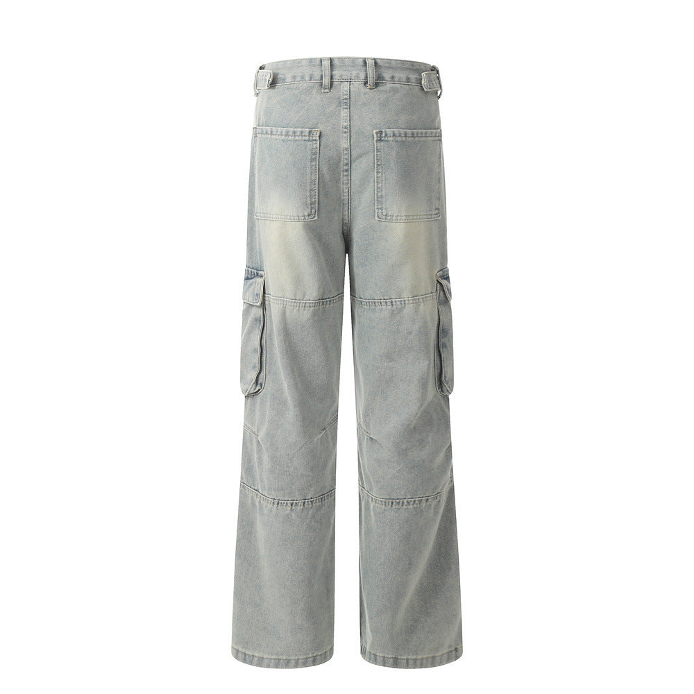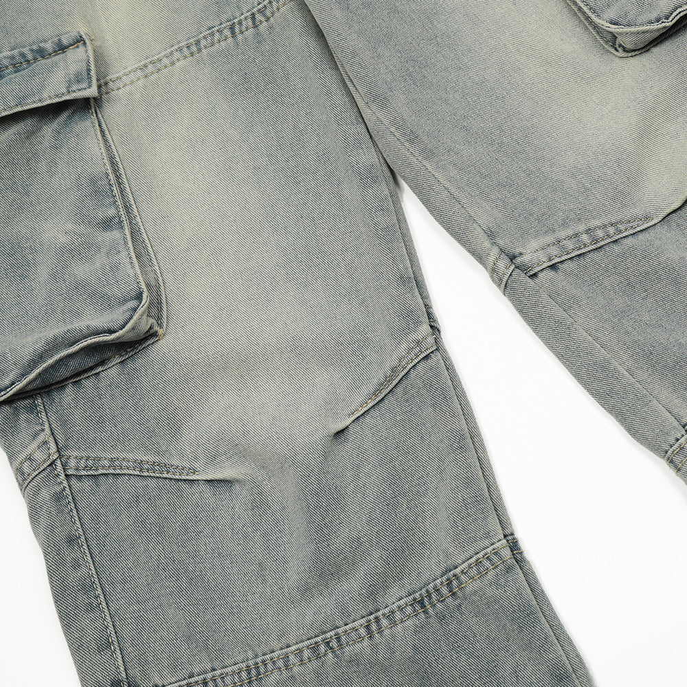 Punk Old Wash Denim Cargo Pants Trousers Men