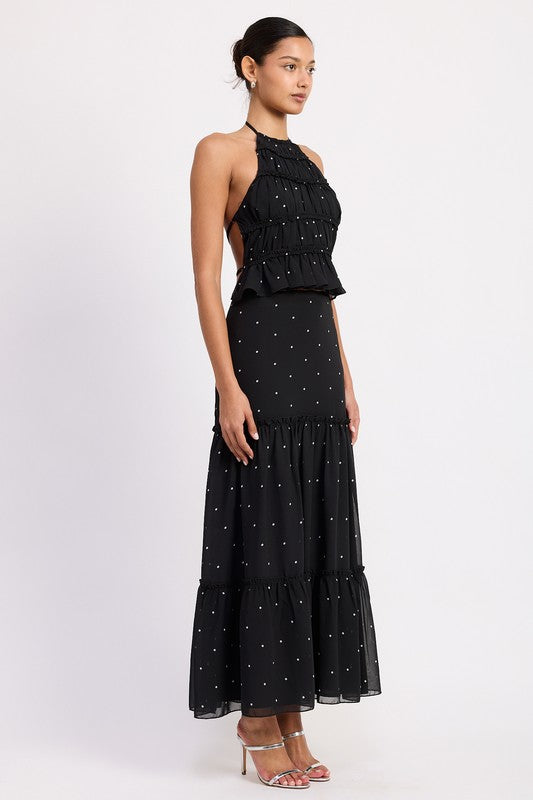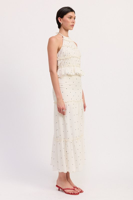 TIERED RUFFLE MIDI SKIRT