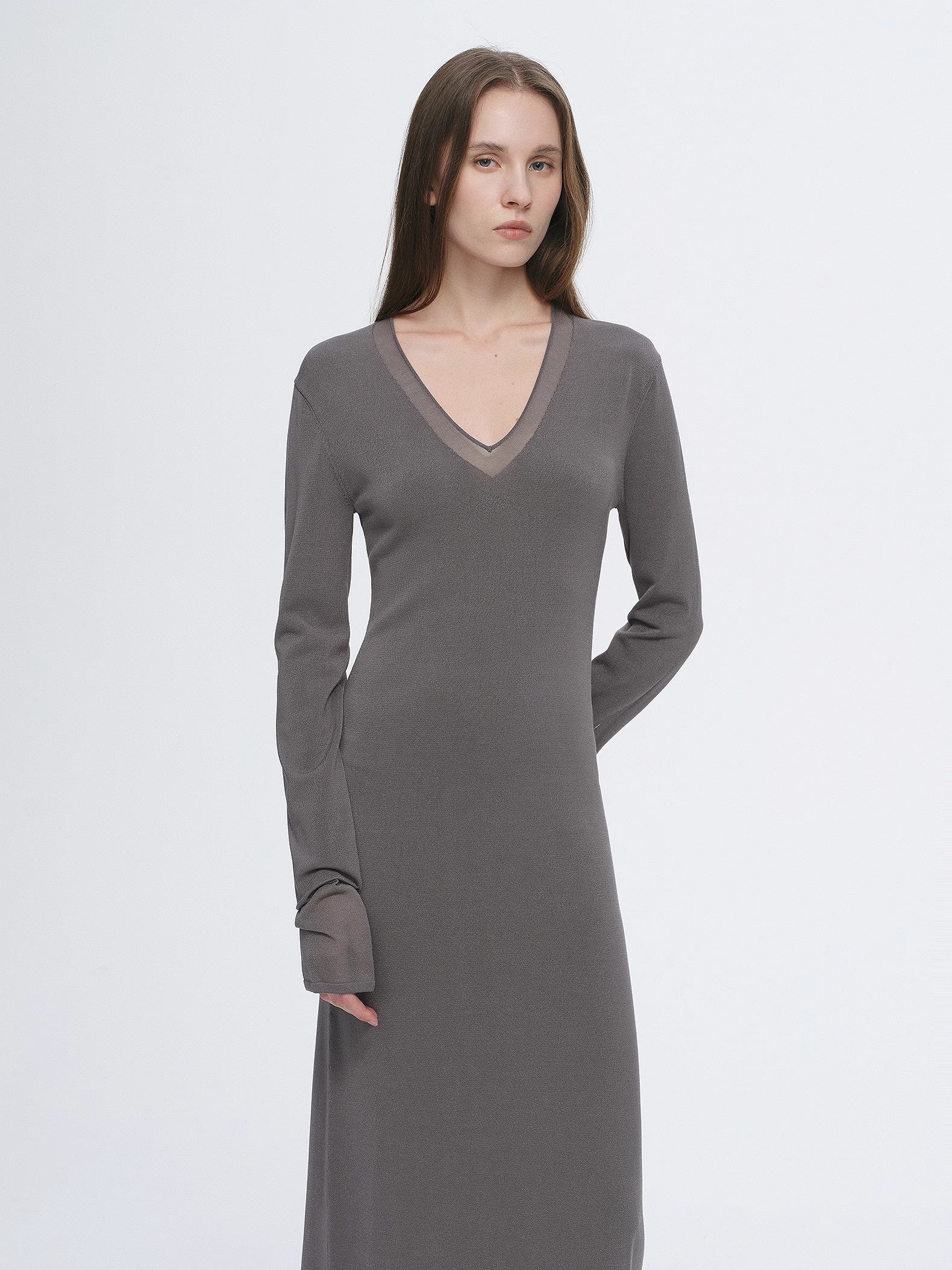 Virella combines minimalist structure with subtle transparency for a look that feels both refined and modern. The straight V‑neckline and gently waisted A‑line cut create a clean silhouette, while sheer mesh panels add lightness and a hint of intrigue. Made from a glossy triacetate–Tencel blend, the fabric drapes smoothly, offering breathability and a soft touch against the skin. Choose black, white, or gray to match your personal style, and enjoy versatile elegance suited to gallery openings, dinners, or daytime polish.