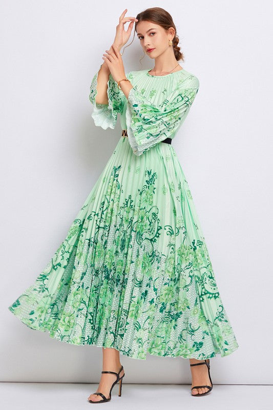 Sexy fashion dress, round neckline,3/4 short sleeves, stretch fabric, pleated style skirt with belt