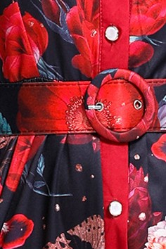 Details-floral multi print, little v-neck look, sleeveless front button, A-line style with belt, run small