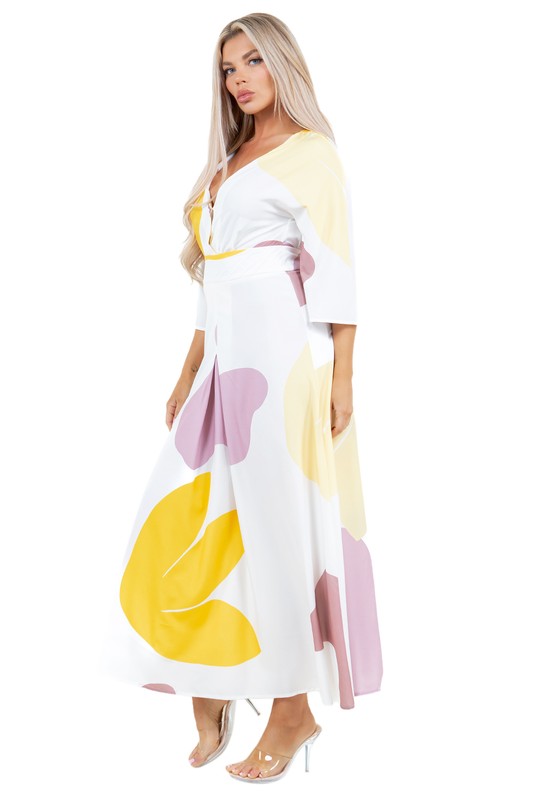 Details-Fashion long maxi dresses, 3/4 Sleeves, V-neckline, back invisible zipper, summer look